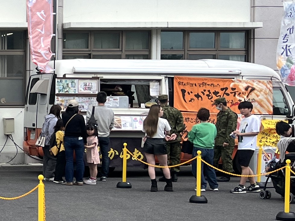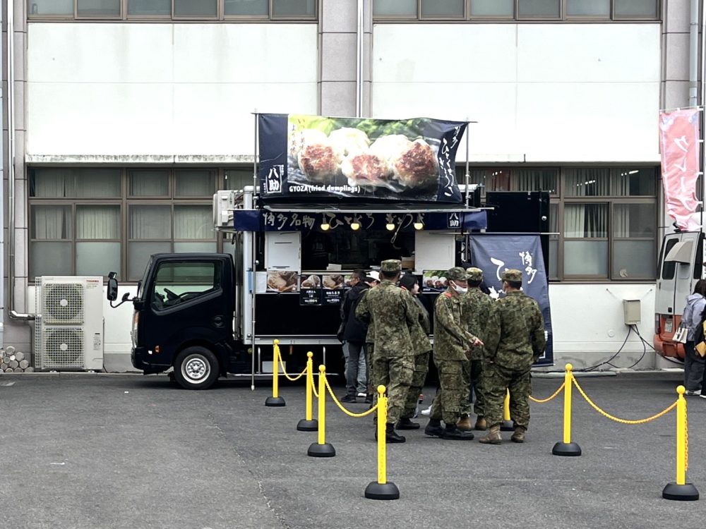当日は、7台のキッチンカーが出店し、来場者の皆さまに向けて多彩なフードメニューを提供。駐屯地を一般開放して、記念式典、自衛隊体操、訓練展示、体験試乗などが行われるなか、訪れた皆さまに自慢のキッチンカーメニューを提供することでイベントを盛り上げるお手伝いをしました。